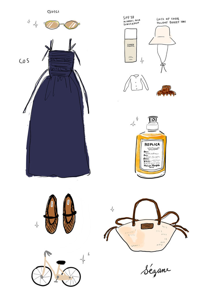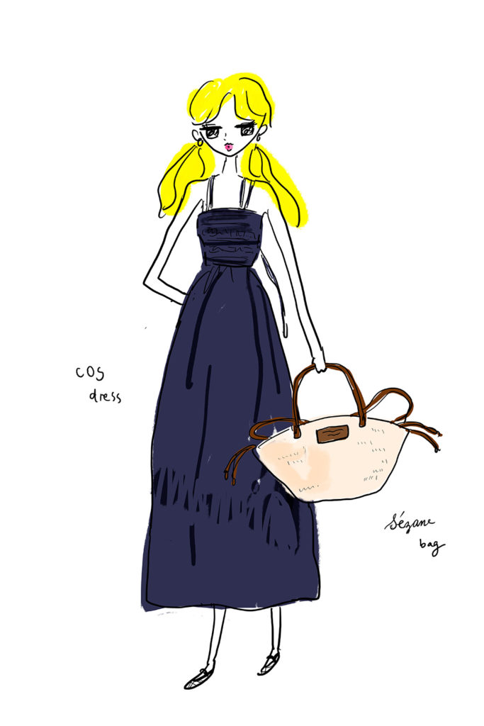 このワンピは私も持っていて、COSで見つけました。スパゲティストラップと上品なネイビーが気に入っています。キャンディと私は休日のお買い物で着ました。次はビーチで着たいです♡