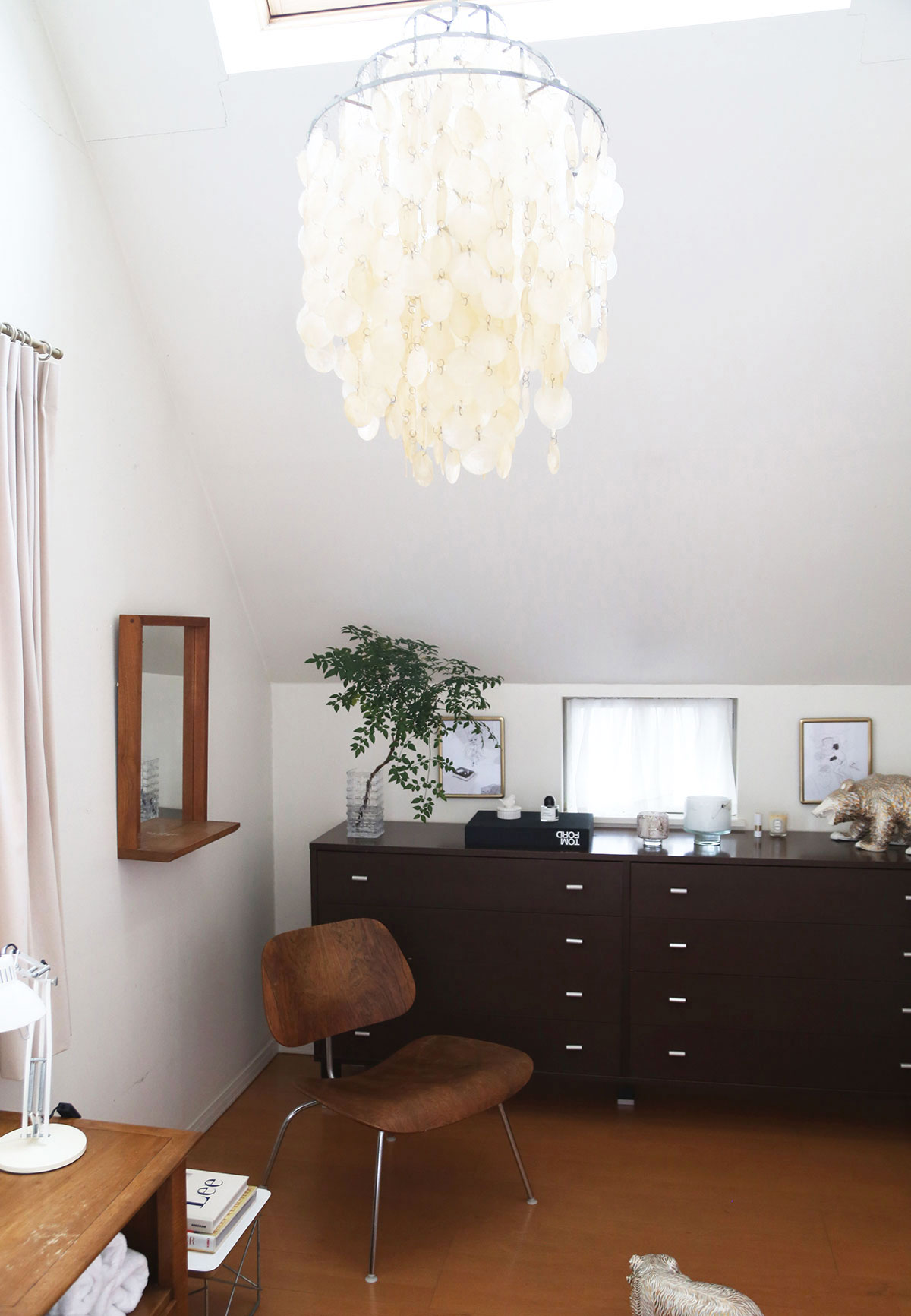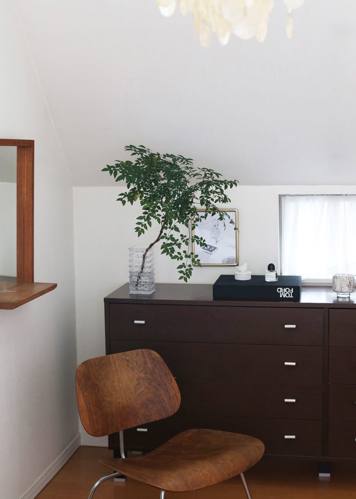 寝室のチェストの上は、リラックスできるように、落ち着いた雰囲気に整えています。