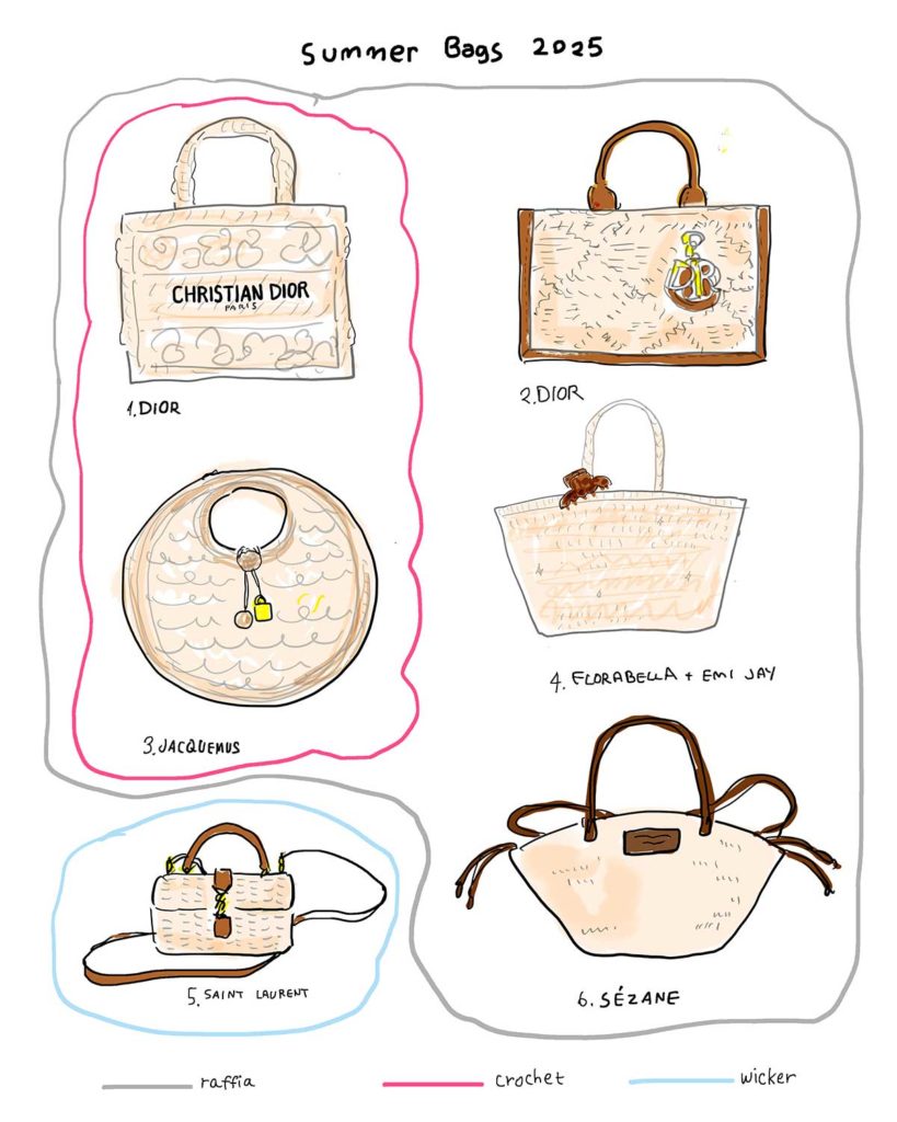 サマーバッグの用語解説、いかがでしたでしょうか。素材や技法について整理すると、賢いお買い物ができるようになります。例えば、「ラフィアバッグは十分持っているから、今度はクロシェバッグにしようかな?でも、クロシェドレスがあるから、ウィッカーバッグにしようかな」と、こんなふうに本当に必要なものが分かるようになります。