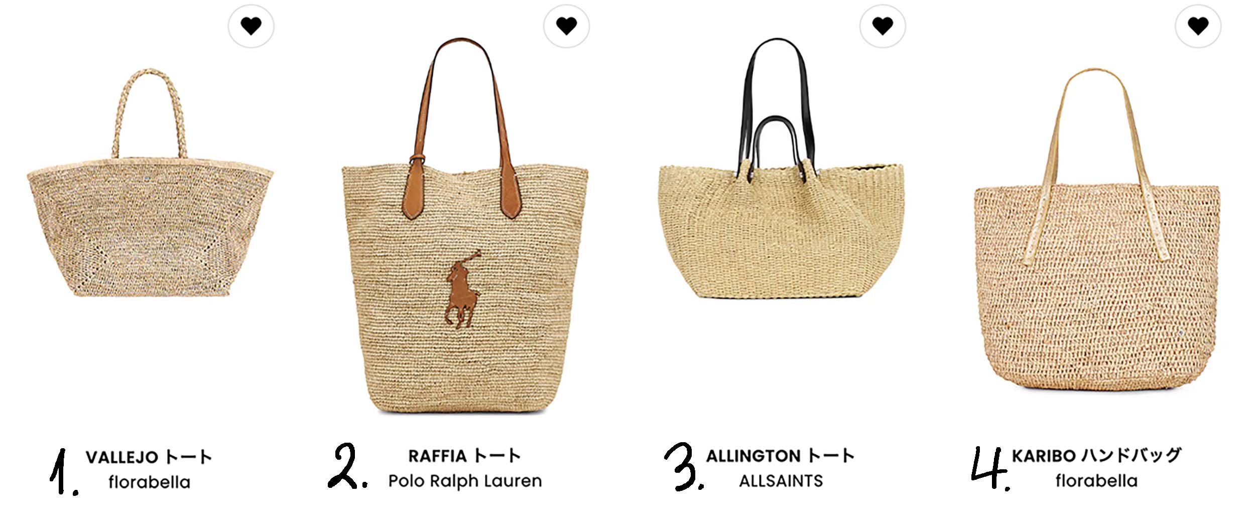 今回、ご紹介したバッグは1番のFlorabellaのVALLEJOトートです。2番のラルフのも可愛いですよね!
