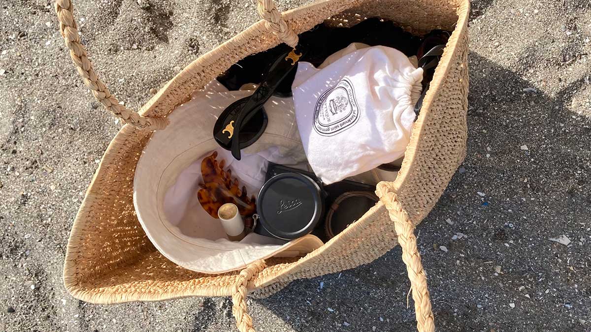 日焼け止めや、タオルや飲み物、なんでも気軽にぽんぽん入れられて、中も見やすいのでストレスなし、ラフだけど品のあるデザインで、ビーチから街歩きまで頼りになるバッグです。