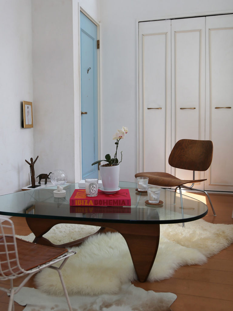 さっそく、イサム・ノグチ テーブルの上に置いてみました。ウォールナットの脚のチョコレート色と、本のピンク色が予想以上にマッチ。あるときはトーマスのプラレールの線路が敷かれているテーブルが、瞬く間にラウンジのようになりました♡