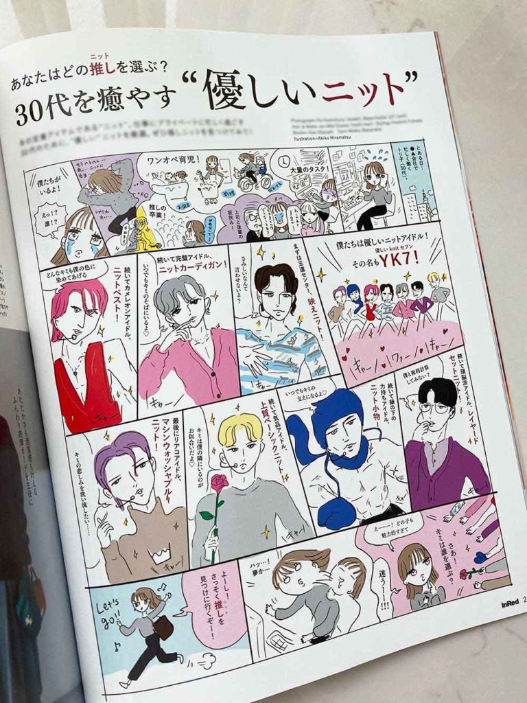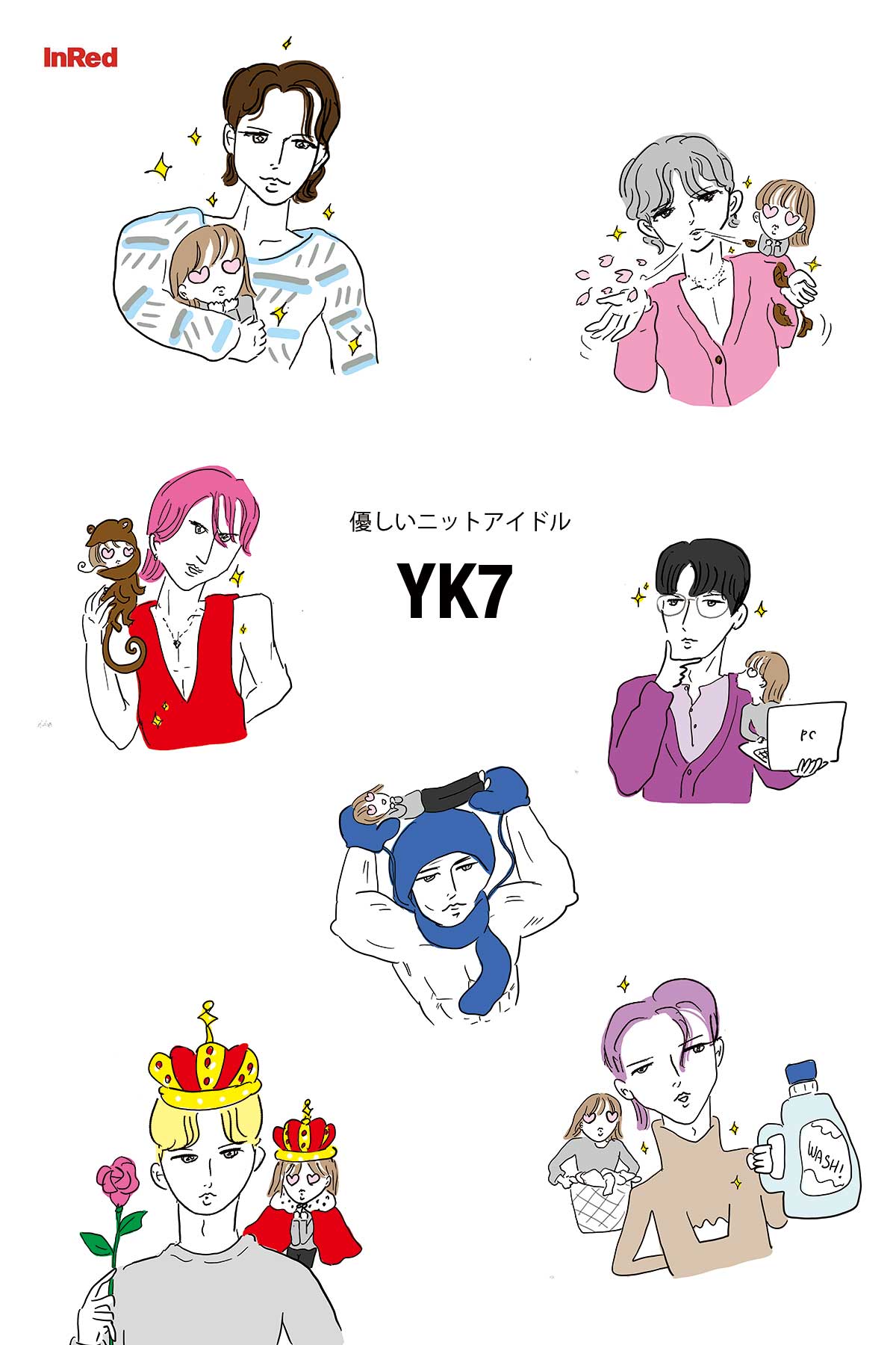 「YK7」は、優しいニットアイドル7人で構成されていて、歌って踊れてニットが最高に似合うスーパーアイドルです。『InRed』11月号のニット企画で誕生しました。