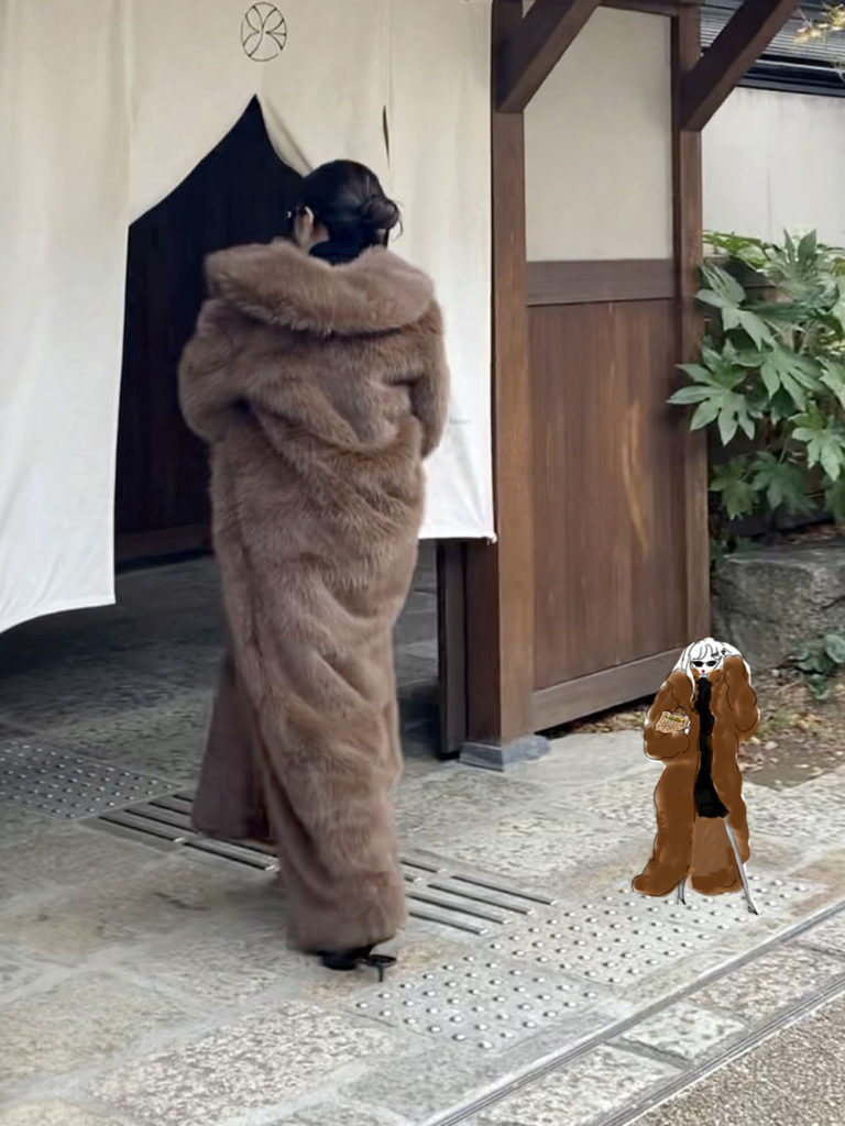 最後はパジャマの上にロングファーコートを羽織って、パン屋さんで朝食をテイクアウトしているキャンディです。旅先でやってみたくなりませんか??