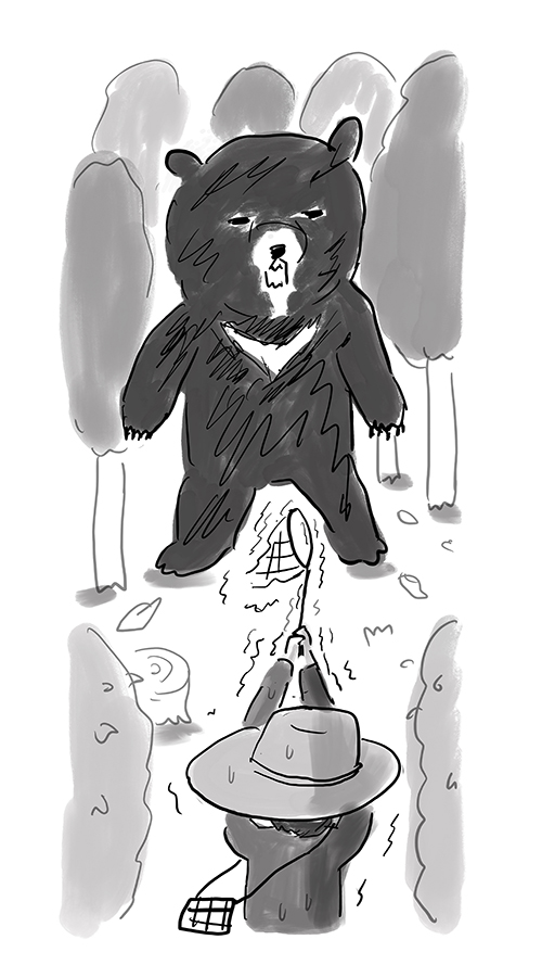 一度でも人を襲うことを覚えたクマは絶対に忘れません。だから、また人を襲うのです。虫取りがライフワークの池田先生は、ある日、山の中で大きなツキノワグマに遭遇!虫取り網をクマに向け、お互い睨み合いが続いたあと、クマは去っていきました。