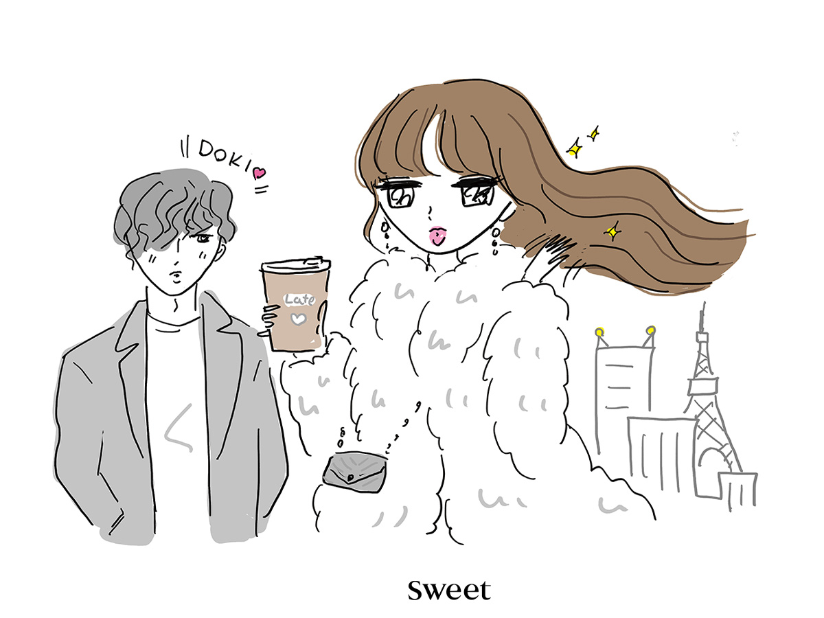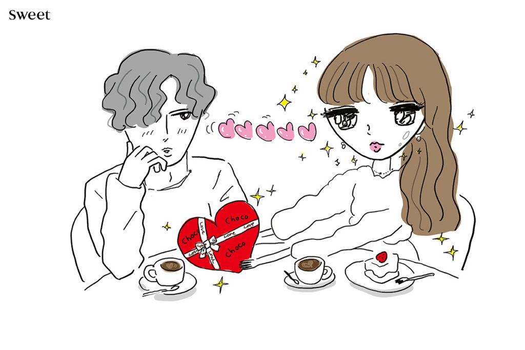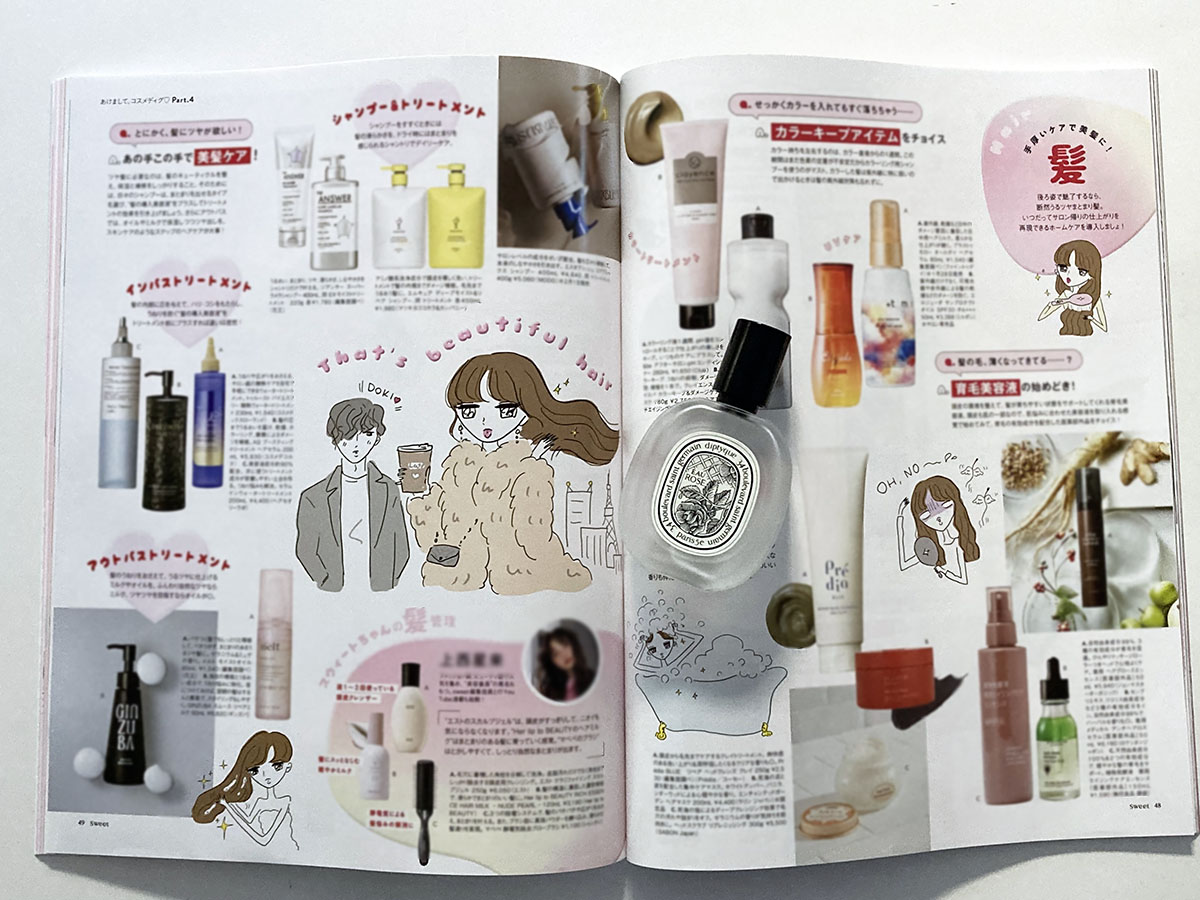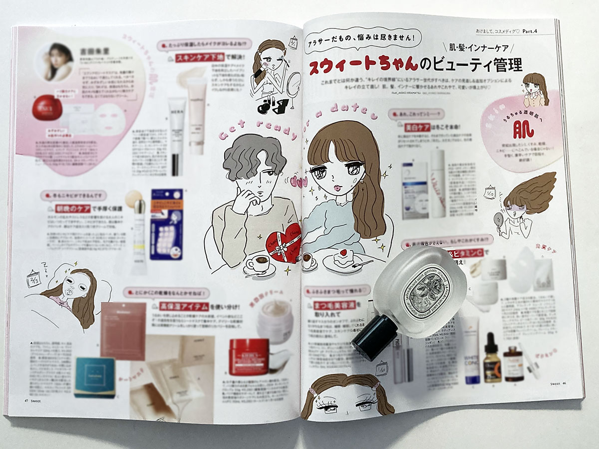 バレンタインデーに向けて頑張る女の子、sweetちゃんを「sweet」2月号で描かせていただきました。好きな男の子に振り向いてもらうための美容テク満載の特集です。